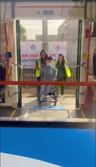 Следует отметить, что в конкурсные задания было впервые включено упражнение по перевозке маломобильного пассажира. Участникам предстояло проявить особое внимание и старательность при выполнении данного испытания. Так, согласно правилам, кроме стандартных действий, в случае обнаружения на остановочном пункте маломобильного пассажира водителю необходимо выйти из кабины вагона, разложить пандус для заезда инвалидного кресла и сопроводить пассажира в вагон, закатив коляску на специально предусмотренное место в центре вагона, затем закрепить специальным ремнем, узнать о месте высадки пассажира, то есть о пункте назначения, а также проинформировать о наличии специальной кнопки для подачи сигнала водителю, затем вернуться в кабину и продолжить поездку с соблюдением всех своих обычных обязательств.